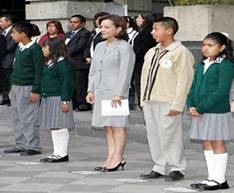 La titular de la SEP presidió la ceremonia de abanderamiento a la escuela Primaria Enrique C. Rébsamen, que en 2007 logró el primer sitio de la Prueba ENLACE en el Distrito Federal.