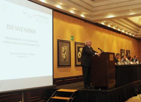 México, D.F. diciembre 4 de 2013. Al inaugurar la Tercera Etapa del Programa de Actualización y Profesionalización Directiva del nivel medio superior, en la que participan 953 directores de planteles pertenecientes a diversos subsistemas de este nivel educativo, el Subsecretario de Educación Media Superior, Dr. Rodolfo Tuirán, aseguró que con acciones como ésta se busca colocar la profesionalización directiva en el centro de las prioridades de la agenda educativa.